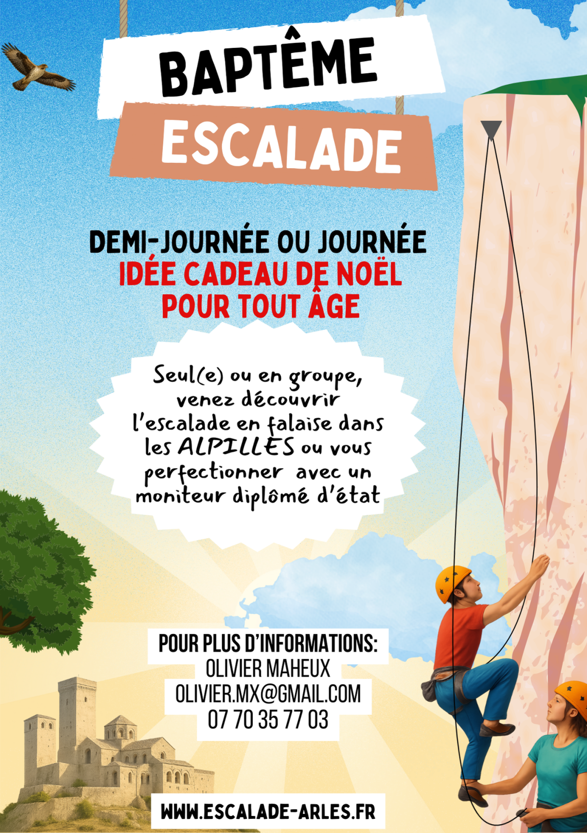 Sortie falaise à la 1./2 journée autour d'Arles, particulièrement dans les Alpilles : 130 euros.